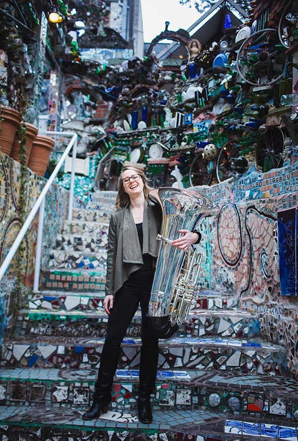 Since 2017, Ms. Jantsch has hosted an annual Tuba/Euphonium PlayIN, a free community event presented by the Philadelphia Orchestra where players of all ages and skill levels are invited to perform as a mass tuba ensemble on the Marian Anderson Hall stage.